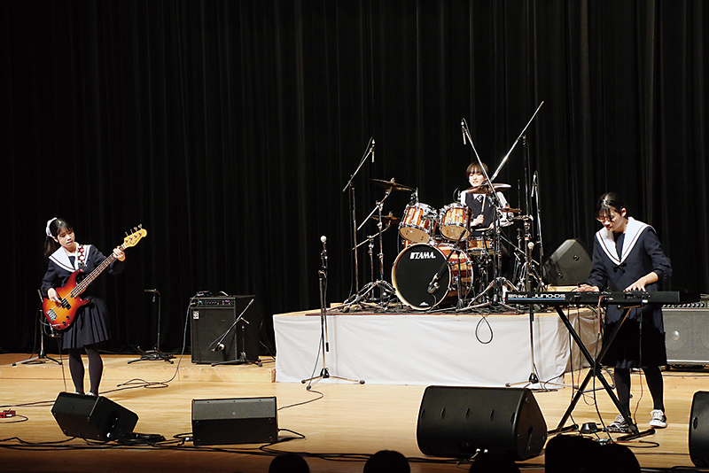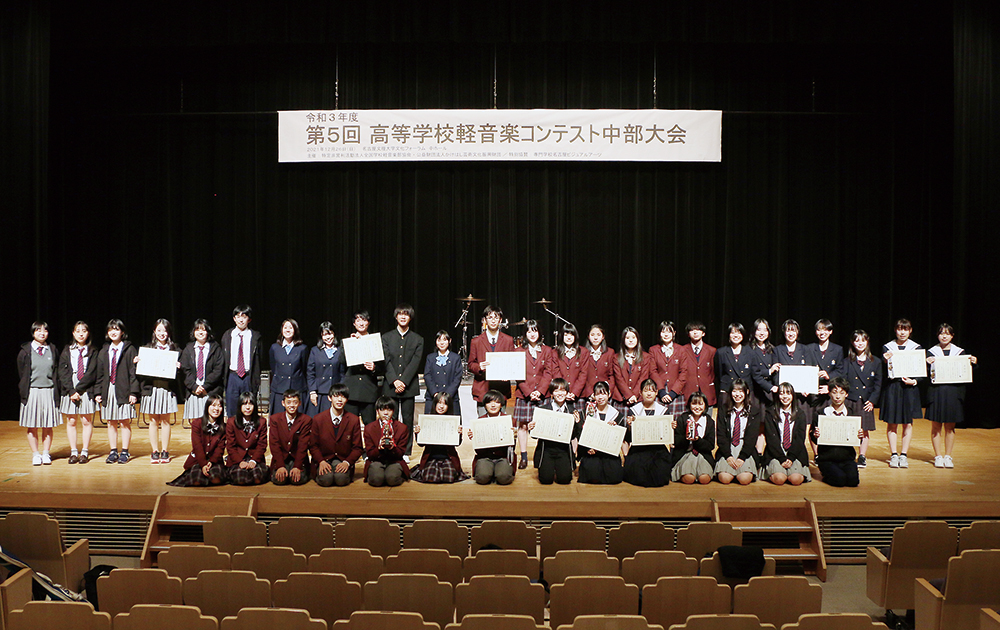 新型コロナウイルス感染症への対策を行いながら、今冬も高等学校軽音楽コンテスト中部大会を開催。2019年の夏に始まった本大会も、今回で第5回目を数えることになりました。前日の愛知県大会に続いて、本大会も名古屋市立名東高等学校の放送部員が司会を担当。大会の進行や出場バンドの紹介を行いました。また、換気のためのドアの開閉や受付、出場バンドの誘導なども愛知県の出場校を中心に軽音楽部員が交代で行うなど、これまで以上に生徒主体の大会となりました。