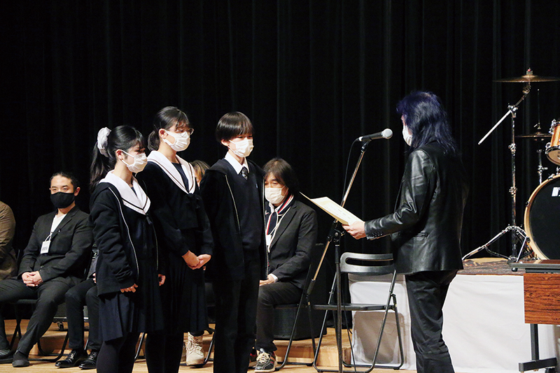 全20バンドの演奏が終わり、厳正な審査のもと、今冬の大会は愛知県立旭丘高等学校の「THELASTL!E」がグランプリを受賞。審査員長である、当協会の副理事長は総評で「出場バンドの総合的なレベルが上がっており、今日の大会に向けて、皆さんが必死に練習してきた様子や想いは、どのバンドも同じでした。ただ、全体的なレベルは上がっているのですが、どのバンドも何か1つが足りない…という印象があり、例えば、演奏技術は高いけれど、全員でまとまっていく!というアンサンブルが足りなかったり、オリジナル曲の完成度は高いけれど、音色へのこだわりが感じられなかったり、観客を魅了するというパフォーマンスがもう一歩だったり…という感じでした。今日は、いろいろなバンドの演奏を聴いたと思うので、自分たちのことを激励しつつ、他校の良いところを取り入れて、明日からの活動に励んでください」と述べ、大会を締めくくりました。